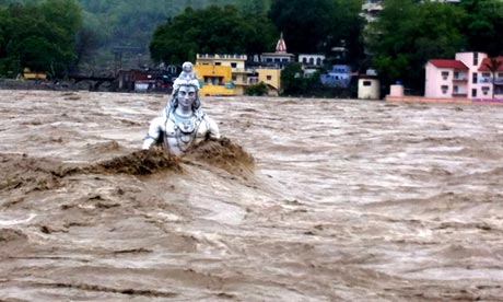 Catastrophic floods in the Himalayan region of India killed thousands of people and destroyed countless structures and natural habitat. As Vandana Shiva discussed during a recent interview,  the severity of these floods is in large part due to irresponsible hydropower and development projects greenlighted by a corrupt government. Photograph: Indian Photo Agency/Rex Features