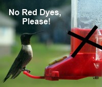I know it’s not Thursday, but I wanted to throw back to a blog I wrote a few years ago on another website. I bought a hummingbird feeder for my mom the other day, and was looking at the various nectars for sale at the store. It was depressing. Most of them had artificial colors, flavors, and preservatives, and were heftily priced to boot! Is it not enough that we are poisoning ourselves with processed food–now we have to poison tiny birds too? For goodness sake, all you have to do is mix sugar and water together and put it in the feeder.